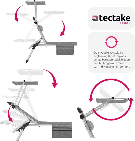 tectake® - Chaise longue Lorella rembourrée, pliable - gris chiné - 220 x 60,5 x 34 cm, avec poche latérale