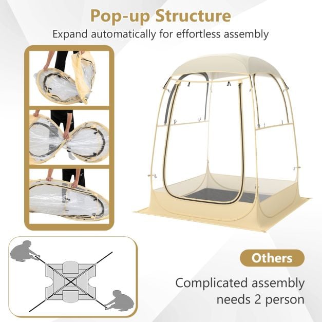 - Compacte mais spacieuse: Mesurant 128 x 128 x 158 cm, la tente offre suffisamment d'espace pour deux personnes avec leurs bagages.