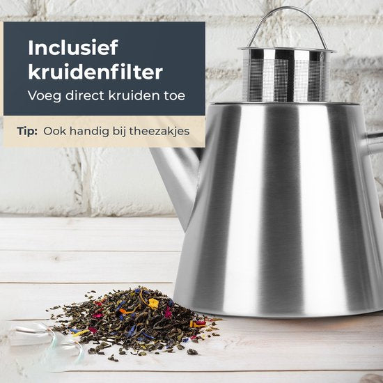 Cette théière est fabriquée en acier inoxydable 304. Ce matériau empêche les rayures et la rouille, est antibactérien et facile à nettoyer.