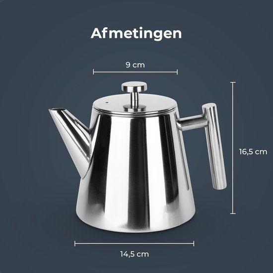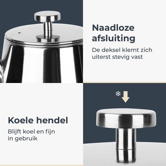 Théière Castagnola avec filtre - Théière à double paroi - Thermos en acier inoxydable - Pichet isotherme 1 L - acier inoxydable - Silver