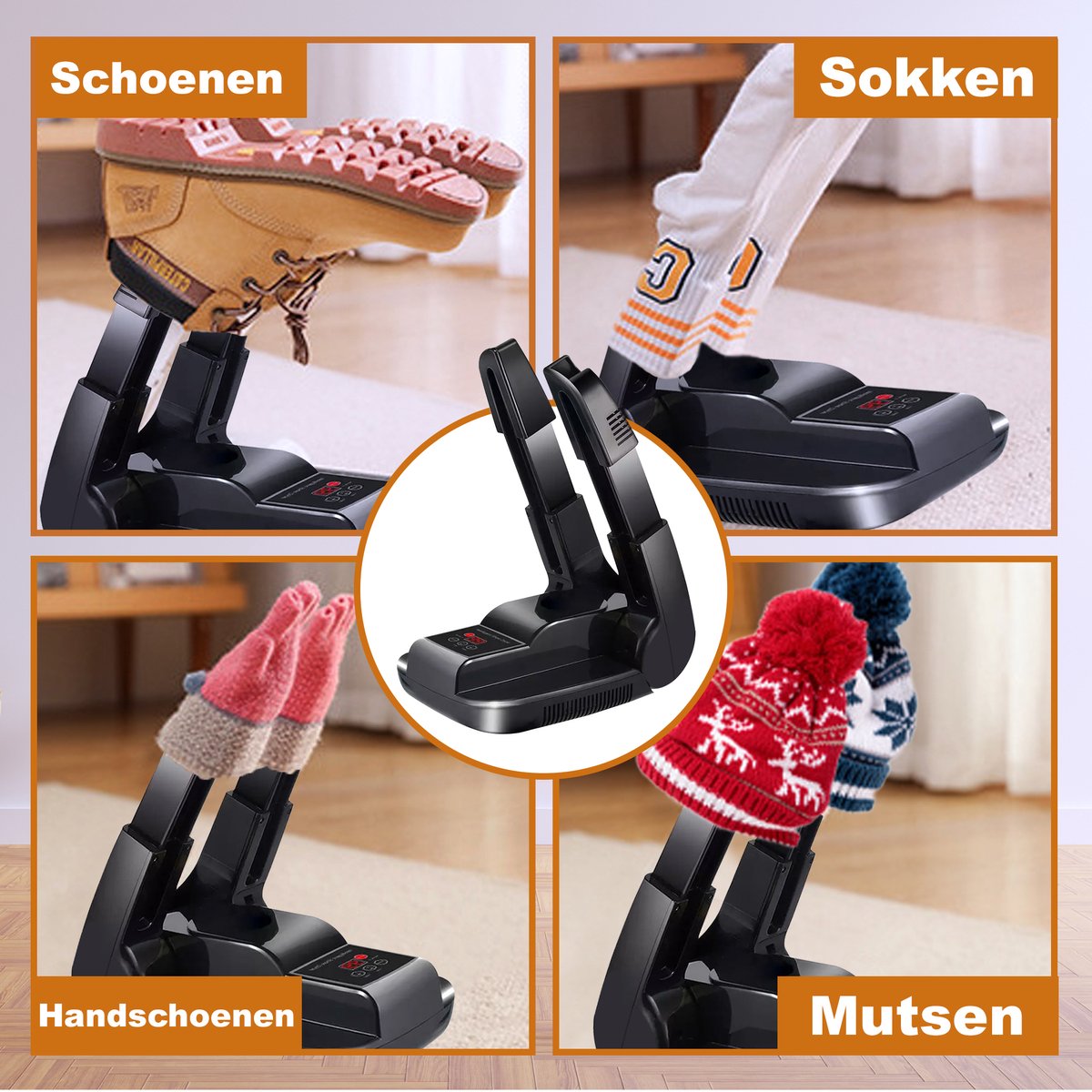 Tout le monde connaît des moments où ses chaussures sont incroyablement mouillées et trempées. Cela arrive souvent, surtout pendant les mois d'hiver, à cause de la pluie ou de la neige. Lorsque vous utilisez le sèche-chaussures, vos chaussures, bottes, chaussures de football, chaussures de ski ou vos gants sèchent à nouveau rapidement.