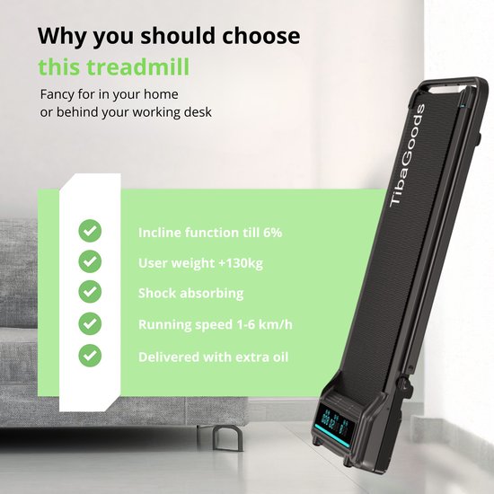TibaGoods Tapis de course - 6km/h - Pour le bureau - Avec huile supplémentaire - Nouvelle version - jusqu'à 130kg