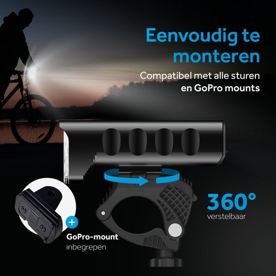 Options de montage flexibles - Fixez-le au guidon (pivotant à 360°) ou utilisez un support GoPro