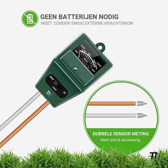 TIKKENS® Humidimètre de sol Plantes - Humidimètre pour plantes - pH et photomètre - 3 en 1 - Fleurs/Plantes - Analyses de sol de jardin - Humidimètres