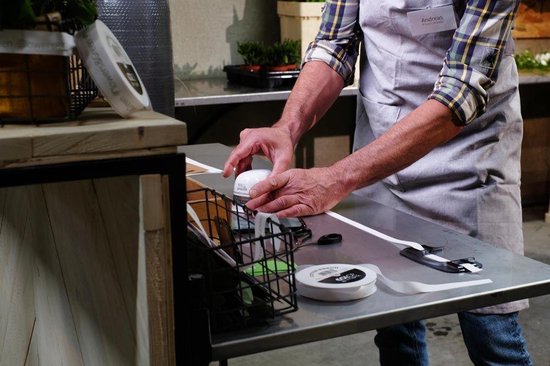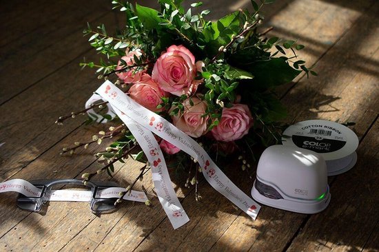 Le guide ruban permet une personnalisation rapide et facile des rubans avec le COLOP e-mark®. Faites passer le ruban à travers le guide (largeur 15 et 25 mm) et faites glisser le guide avec le e-mark vers la droite. Et voilà, votre ruban maison avec un motif d'impression unique est prêt. Idéal pour emballer, faire des cadeaux, décorer et célébrer.