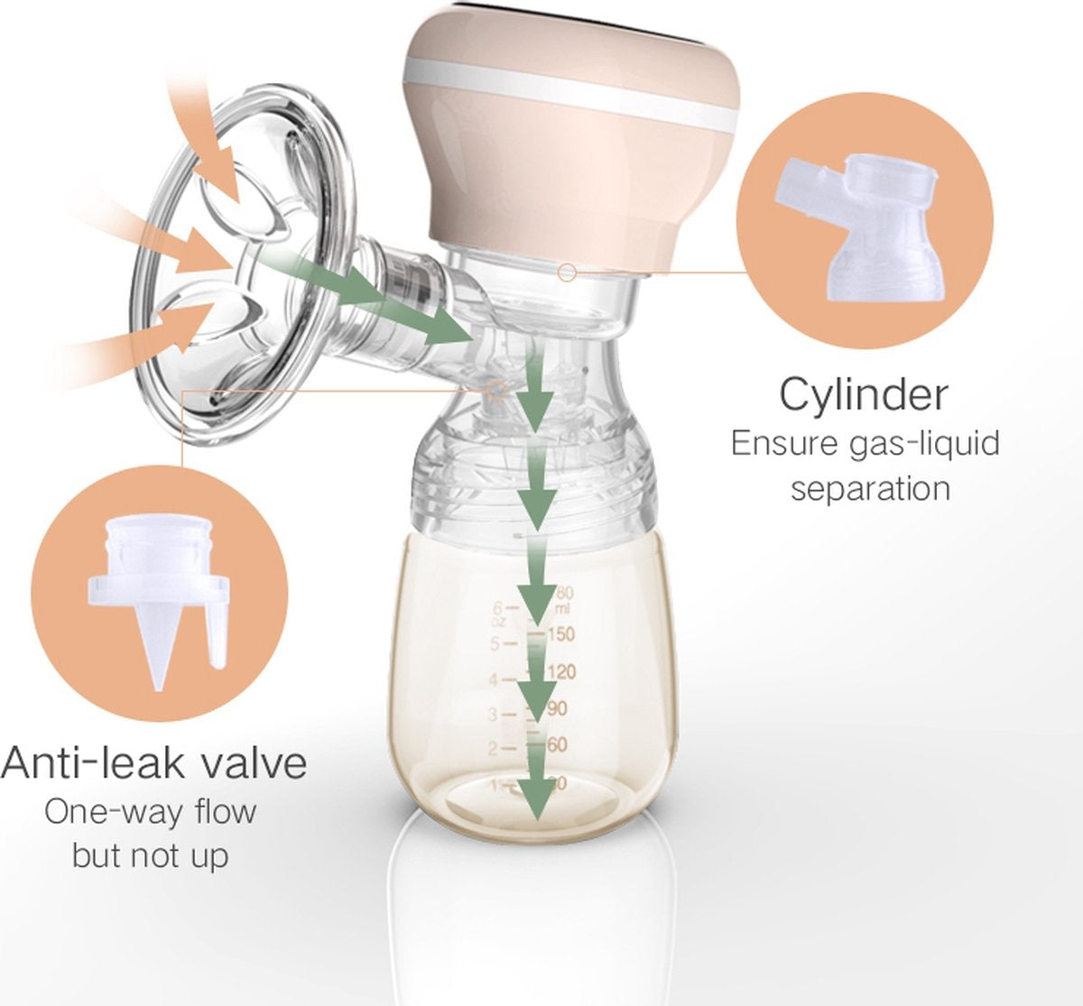 【Backflow protector】Anti-backflow design provides a hygienic closed system to prevent breast milk from flow backing into the pump, prevent infection and keep breast milk fresh. Le couvercle est fabriqué à partir d'un matériau en silicone de haute qualité 100% sûr.