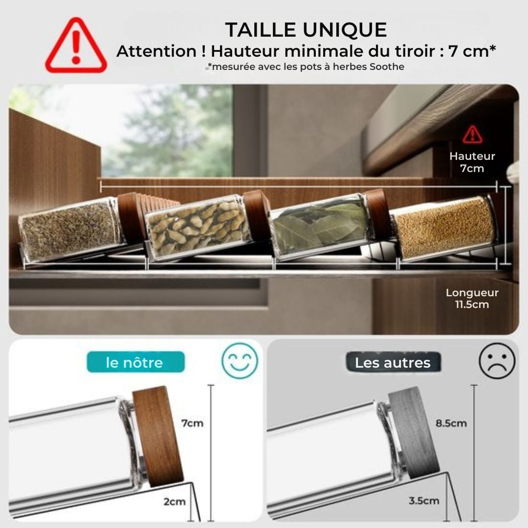 Transformez votre tiroir en espace ordonné et pratique avec l’étagère à épices Soothe. Commandez dès maintenant et profitez d’une cuisine fonctionnelle et bien organisée !