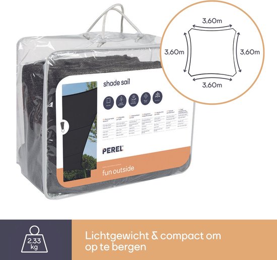 Voile d'ombrage - Perel - imperméable - 3,6 x 3,6 m, 180 g/m² - carré - gris foncé