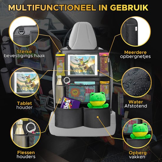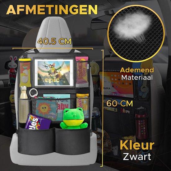 L'organisateur Toivo comprend 9 compartiments de rangement pratiques pour les collations, les jouets des enfants, les bouteilles d'eau, les boissons, les livres et les magazines, entre autres. Le généreux porte-tablette intégré peut accueillir des tablettes jusqu'à 10 pouces. Dites adieu au désordre sur la banquette arrière !