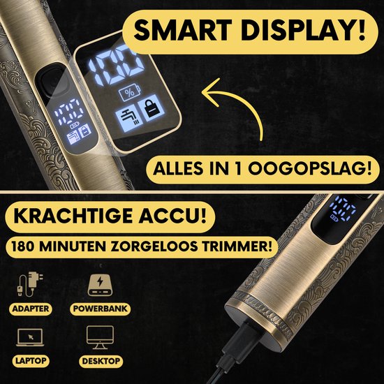 Avec la tondeuse Sansbeauté, vous n'avez plus à vous soucier d'une batterie déchargée ! La puissante batterie offre jusqu'à 180 minutes de coupe et de coiffage sans fil.Len. Cet appareil peut être facilement rechargé par USB, ce qui vous permet d'économiser sur les batteries et de ne pas vous encombrer de cordons inutiles. Grâce à l'écran LED pratique, vous avez toujours un aperçu clair de l'état de la batterie. Profitez de la liberté et de la flexibilité d'une utilisation sans fil, et taillez et coiffez à votre rythme avec la tondeuse à barbe Sansbeauté® 8-en-1 !