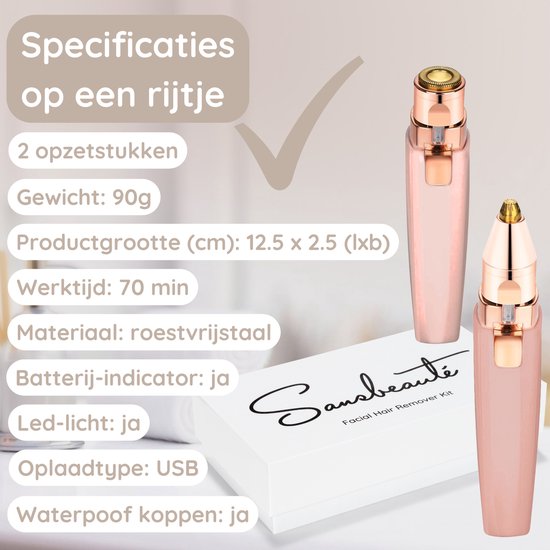Les avantages pour vous sur eUn aperçu :< ✓Indolore - L'édition 2 en 1 Pink de Sansbeauté assure une épilation douce et indolore de la pilosité indésirable sur le visage et le corps, grâce aux couches de protection supplémentaires des têtes de rasage. Dites adieu aux lames émoussées et aux coupures, et profitez d'un rasage doux et confortable sans irritation ni rougeur de la peau. Idéal pour tous, y compris ceux qui ont la peau sensible. ✓Une solution rapide à portée de main - Vous êtes sur le point de sortir mais vous voyez encore des poils sur votre visage ou votre corps ? Vous manquez de temps ! Qu'en est-il ? L'épilation ou le rasage peuvent prendre du temps et entraînent souvent des irritations de la peau. L'épilation devrait être rapide, indolore et facile. Avec le 2 en 1 | Pink Edition vous êtes maximum 5 minutes, complètement indolore et facile à utiliser ! Une solution rapide toujours à portée de main !