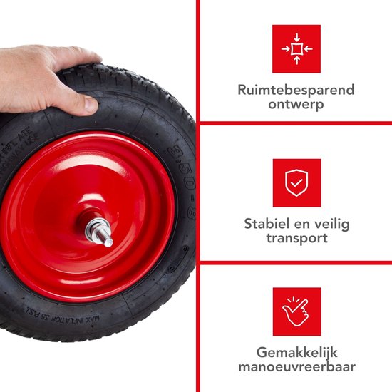 - Fonctionnement en douceur : Équipée d'une roue pneumatique de 350 mm de diamètre, la brouette assure un déplacement confortable et en douceur.Déplacement facile sur différents terrains.