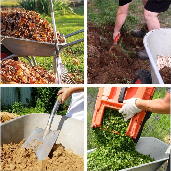 - Convivialité : Pesant 12 kg, la brouette est facile à manipuler, même entièrement chargée de matériaux tels que des déchets de construction, de la terre, du sable, des copeaux de bois ou des déchets de jardin.