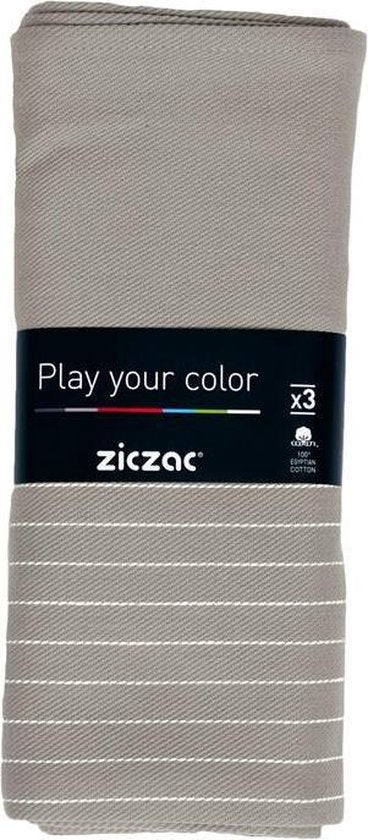 Torchon 50x70cm, set3, centre coloré rayé, taupe