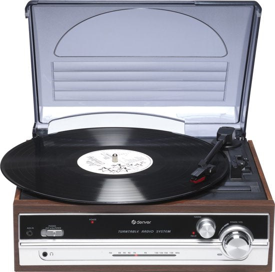 Denver Retro Record Player - Haut-parleurs intégrés - Radio FM - Fonction Auto-stop - AUX - Phono - VPR190