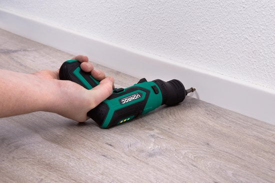 La visseuse sans fil VONROC Li-Ion est dotée d'une poignée ergonomique avec prise en main douce et présente un design compact. Elle est idéale pour être rangée dans le tiroir de votre cuisine ou transportée dans votre sac. Grâce au verrouillage de l'arbre, le tournevis peut également servir de visseuse. Superr pratique lorsque vous voulez serrer des vis plus fermement ou au cas où la batterie serait épuisée.