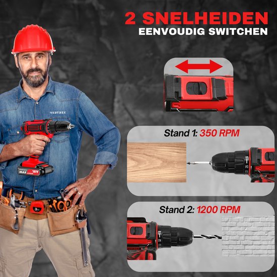 VERTREX Accu Screwdriver 18V - Perceuses sans fil - Perceuses sans fil - Perceuses - 2 batteries incluses