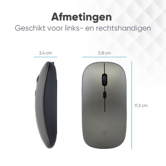 Souris sans fil Trendfield - Souris d'ordinateur rechargeable - Bluetooth - Souris ergonomique avec clic silencieux - Convient à tous les ordinateurs portables - Gris spatial