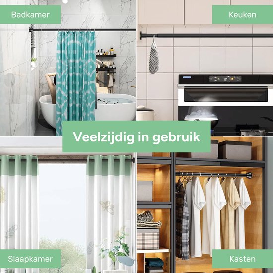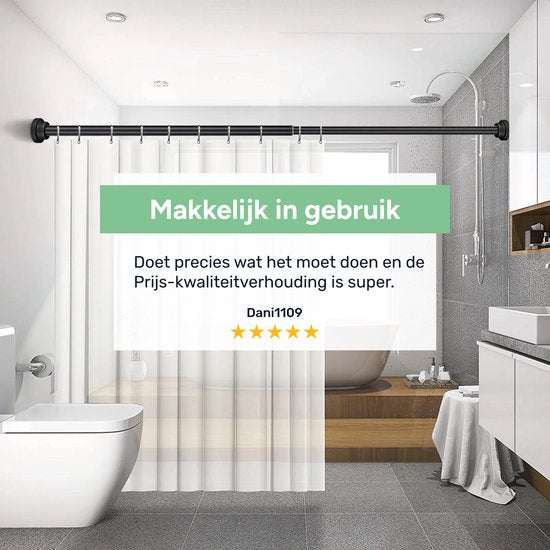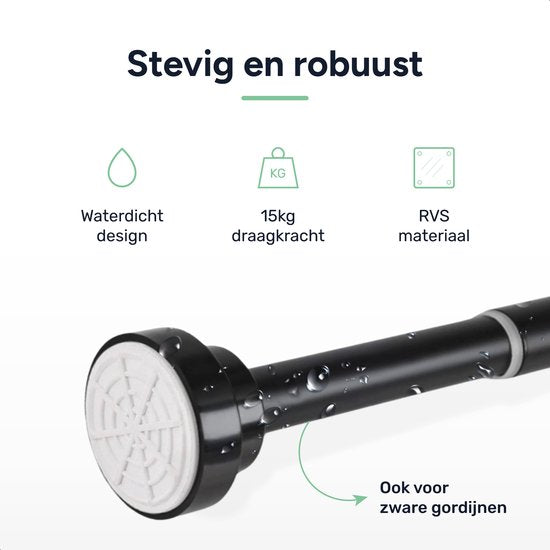 Notre tringle à rideaux noire est spécialement conçue pour s'intégrer parfaitement à votre intérieur. La tringle est réglable pour s'adapter à la largeur de vos murs et peut être fixée en toute sécurité sans causer de dommages. Cela en fait le choix idéal pour les chambres à coucher, les salons et même les salles de bains.