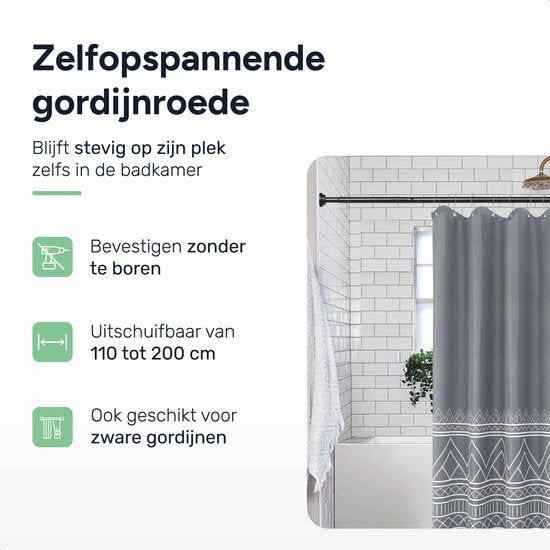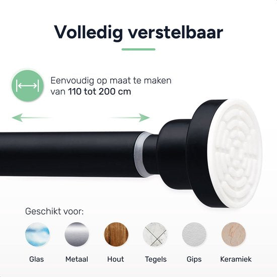 Tringle à rideau - Noir - 110 à 200cm - Pas de perçage - Rail - Extensible - Tringle à rideau complète - Autocollante