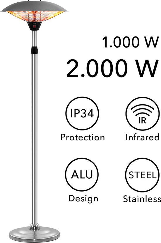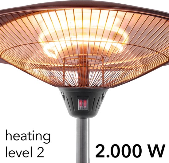 Ce radiateur infrarouge étonnamment léger et économe en énergie, comparé aux radiateurs à jet de gaz, vous offre deux réglages de chaleur puissants (1 000 W / 2 000 W). Grâce aux deux tubes infrarouges halogènes intégrés de 1 000 W, une chaleur homogène est diffusée instantanément dans toutes les directions, sans chargement. Cette chaleur est immédiatement ressentie sur la peau, sans chauffer l'air ambiant, et totalement exempte d'odeurs indésirables ou de bruits gênants. C'est la méthode idéale pour profiter de températures agréables à l'extérieur sous un ciel dégagé tout au long de l'année, ce qui vous permet de conserver la sensation d'été plus longtemps.