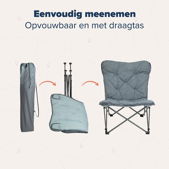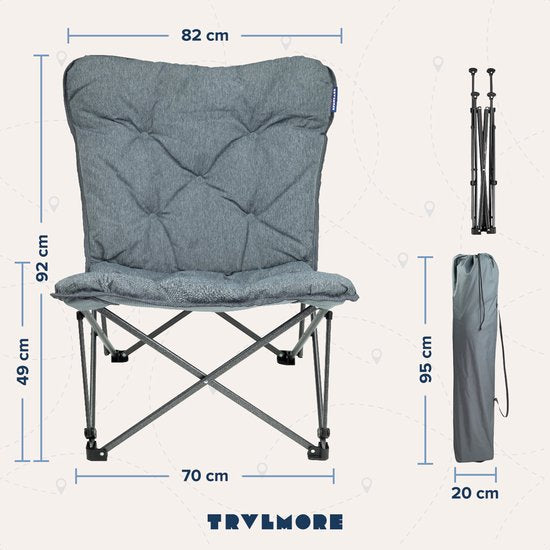 TRVLMORE Chaise de camping - Pliable - Sac de transport inclus - Chaise de camping - Chaise papillon - Capacité de charge 136 kg - Gris