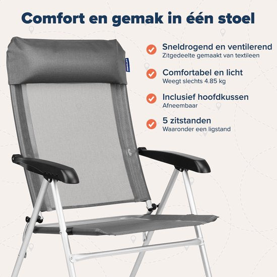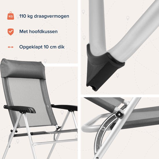 TRVLMORE Chaise de camping - 5 positions - Chaise de camping pliante - Capacité de charge 110 kg - Chaise de pêche - Chaise pliante - Gris