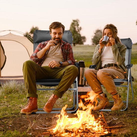 Cette chaise de camping pliable a été conçue dans un souci de commodité. Une fois pliée, la chaise ne fait que 10 cm d'épaisseur, ce qui la rend très peu encombrante. La chaise est donc idéale pour être emportée avec vous, par exemple dans le coffre de votre voiture ou dans un wagon. La conception compacte vous permet de transporter la chaise sans effort.l facile à ranger dans votre garage ou votre placard, sans prendre beaucoup de place.