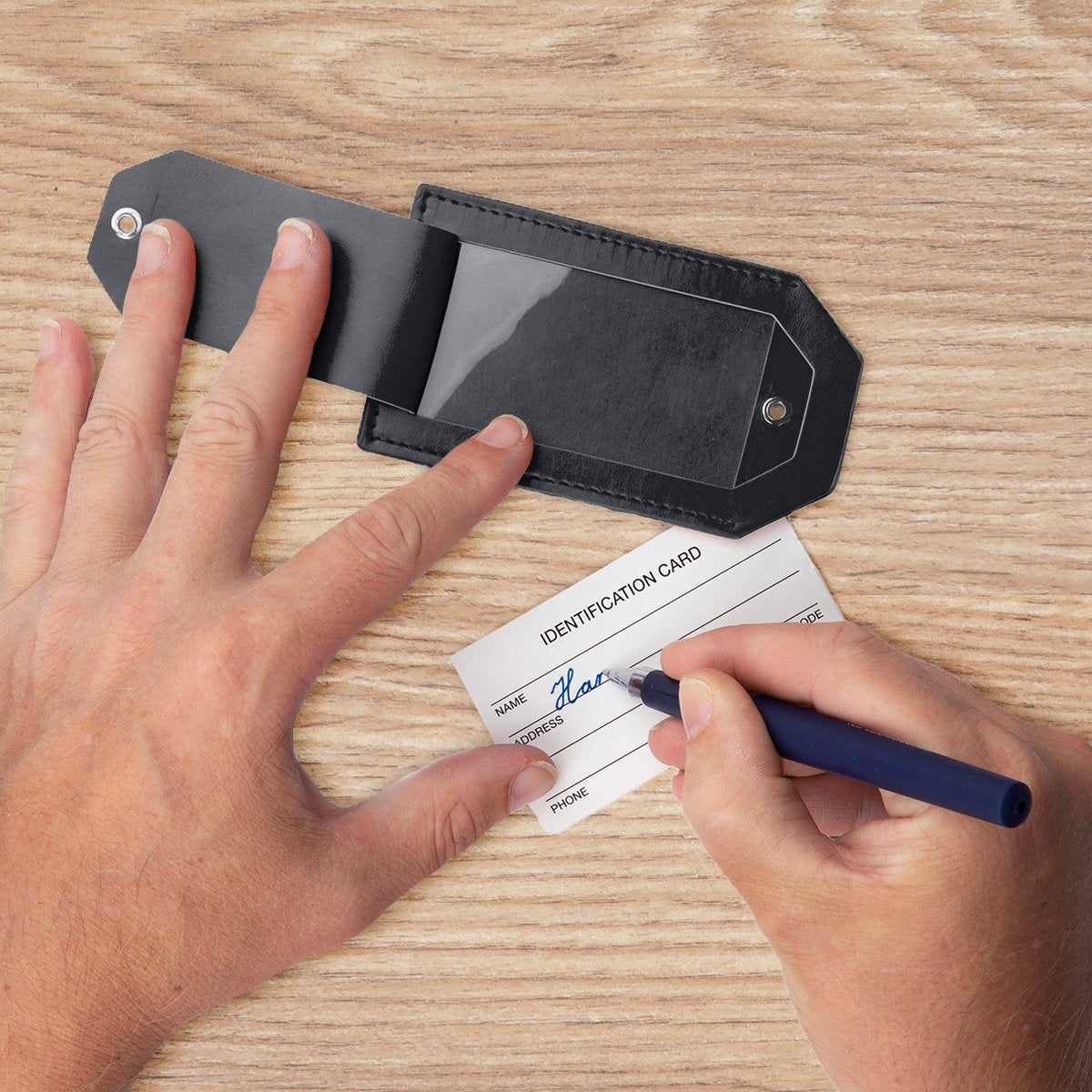 À l'intérieur de l'étiquette de bagage se trouve une étiquette inscriptible pour vos données personnelles, qui est protégée par un cache. En cas de perte de votre bagage, vous pouvez l'identifier immédiatement.
