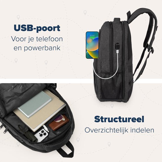 TRVLMORE Sac à dos - 28L - 15.6 inch - Sac à dos pour ordinateur portable - Sacoche pour ordinateur portable - Résistant aux éclaboussures - Hommes et femmes - Anthracite