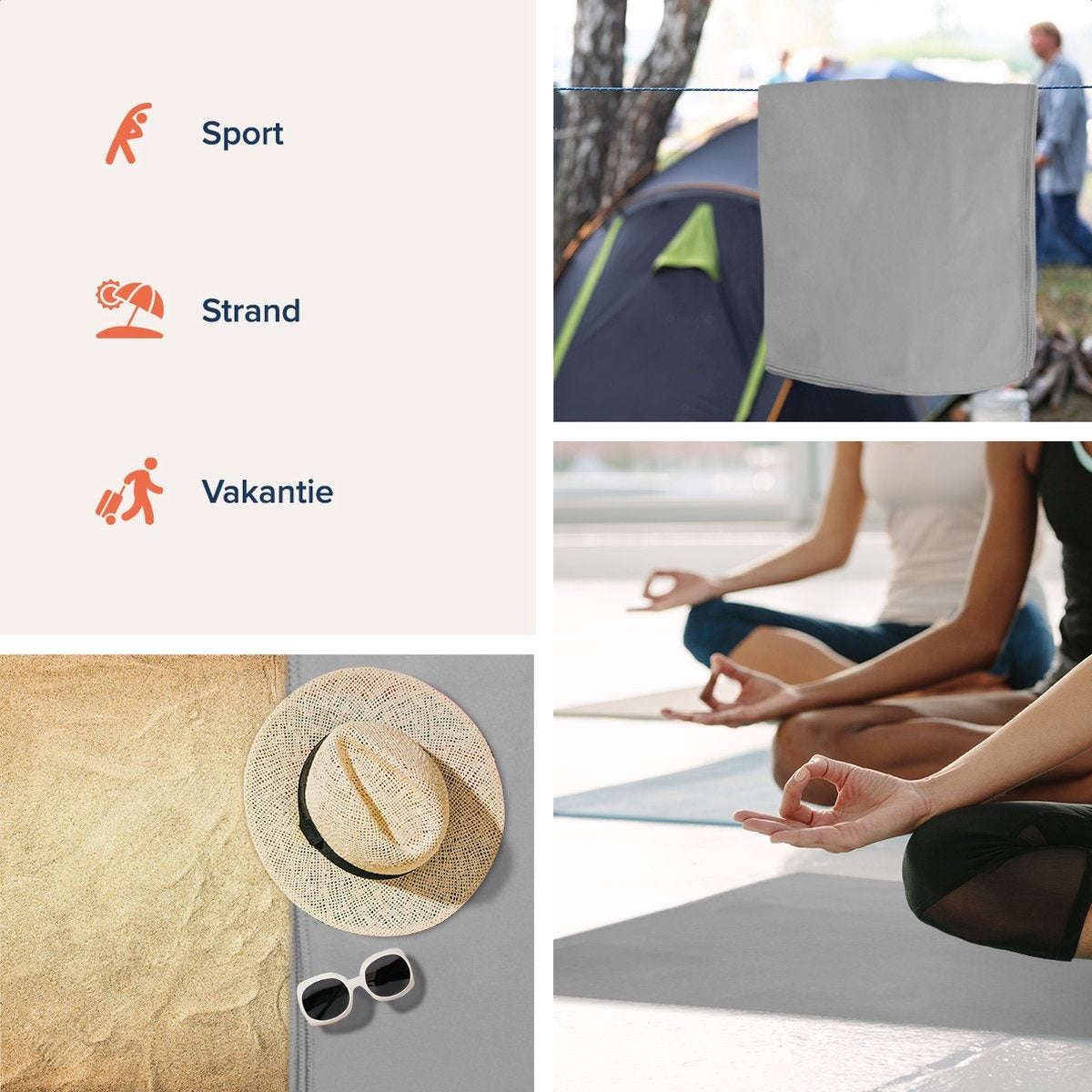 TRVLMORE Set de serviettes de voyage en microfibre - 2 pièces - Petit (40 x 80 cm) et Grand (76 x 150 cm) - Microfibre - Gris