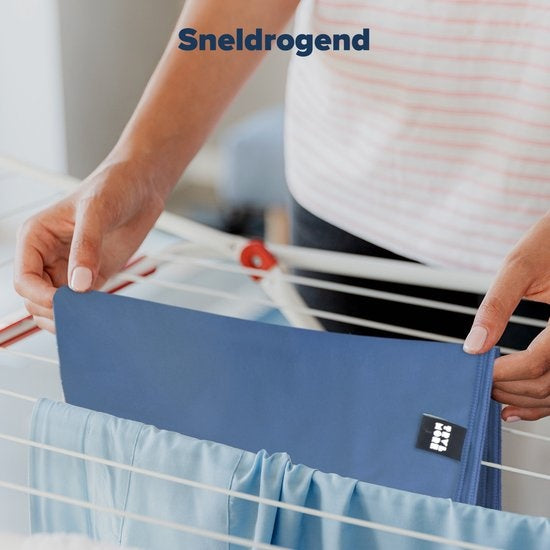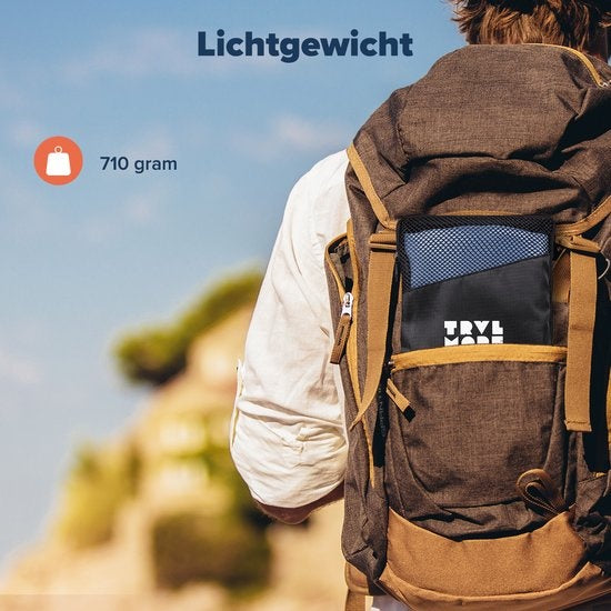 Cette serviette de TRVLMORE sèche cinq fois plus vite qu'une serviette ordinaire, pèse cinq fois moins et absorbe même cinq fois son propre poids. Au lieu d'une lourde serviette de bain en coton qui ne sèche pas, ces serviettes vous permettent d'utiliser une serviette douce et agréable sans attendre longtemps qu'elle sèche.