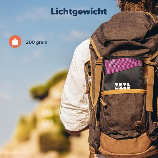 Mettez la serviette directement dans votre sac ou votre valise et emmenez-la à un cours de yoga, à un voyage en sac à dos ou à un festival. Grâce à sa légèreté, elle n'est pas encombrante et vous pouvez simplement la suspendre pour la faire sécher n'importe où après l'avoir utilisée. Cette serviette deviendra donc votre meilleure amie lors d'une séance de sport intense, après une journée de voyage moite ou lors d'un cours de yoga relaxant.