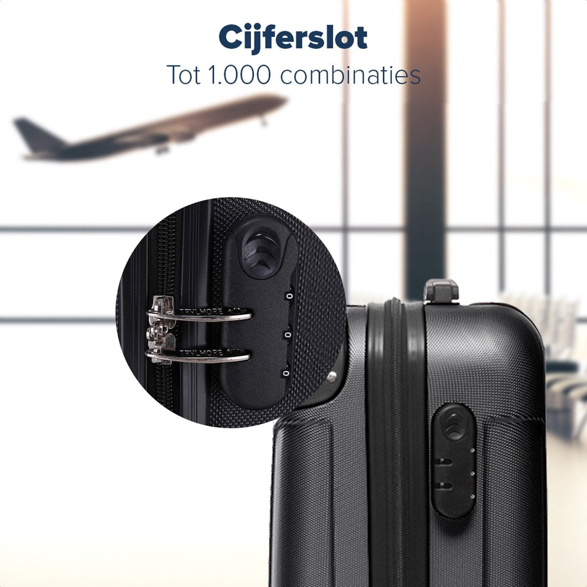 Dans les valises à roulettes, tous vos effets personnels sont toujours en sécurité. Les valises sont fabriquées en plastique ABS, ce qui les rend très robustes, résistantes à la casse et aux rayures. Les valises sont également équipées d'une serrure à combinaison sécurisée, ce qui vous permet de voyager en toute tranquillité.
