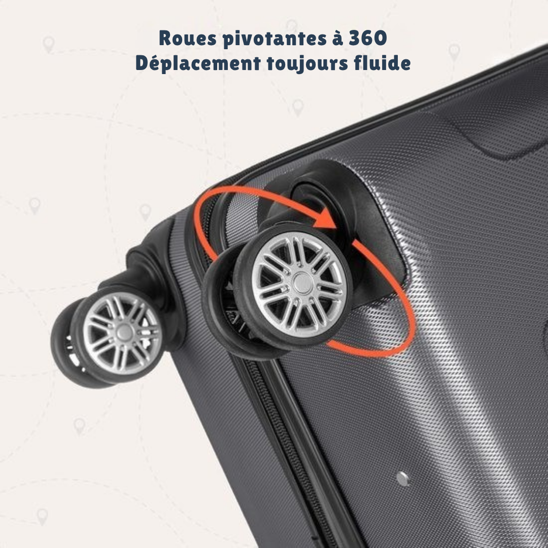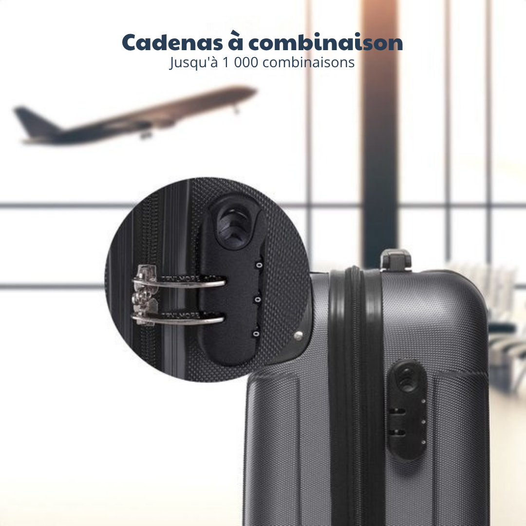 Vous souhaitez évidemment que votre valise à roulettes dure le plus longtemps possible et vous y faites probablement attention. Cependant, vous ne pouvez pas contrôler ce qui arrive à votre valise entre le départ et l'arrivée. Ce qui est sûr, c'est que le personnel de l'aéroport ne sera pas aussi attentif que vous à votre valise. Il est donc important que la valise soit résistante. La valise de voyage TRVLMORE est fabriquée en plastique ABS, ce qui la rend très robuste. En outre, le matériau est résistant à la casse et aux rayures. Vous pouvez donc être sûr que votre valise durera des années.