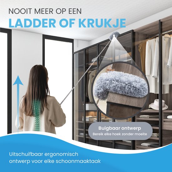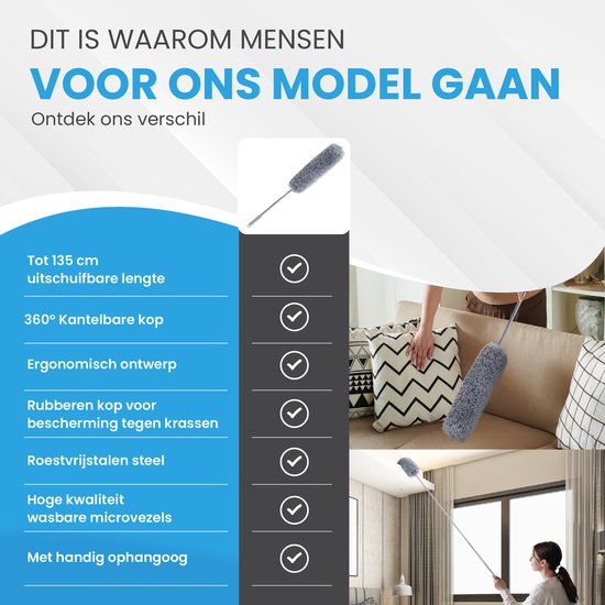 - Longueur extensible (60 - 135 cm) : dépoussiérez les endroits en hauteur sans utiliser d'échelle