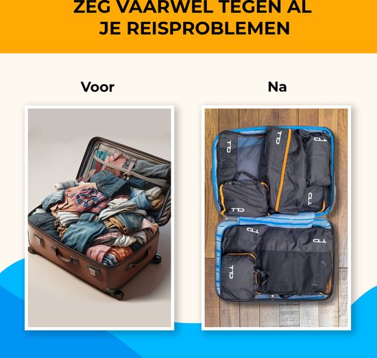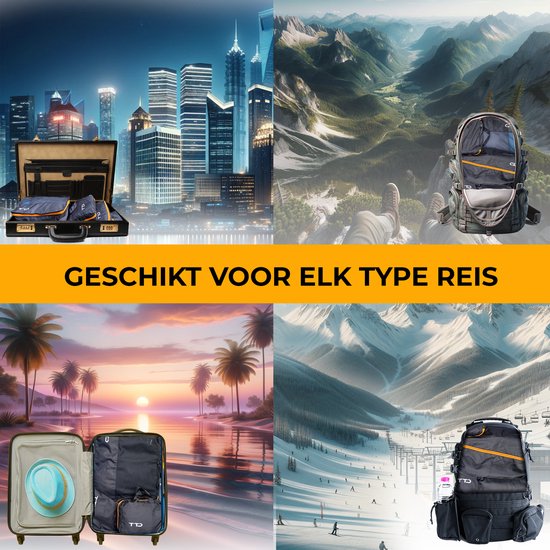Avez-vous déjà pensé que vous pouviez ranger autant d'articles dans des cubes d'emballage de 105 litres ? Que vous partiez pour un court voyage d'affaires ou pour des vacances plus longues, la capacité XXL des cubes de rangement TTD signifie que vous aurez toujours beaucoup de place. Toutes vos affaires, grandes ou petites, se rangent sans problème dans ces cubes, ce qui vous permet de toujours voyager bien organisé et sans stress. Vous utilisez une valise compacte ? Pas de problème ! Vous n'êtes pas obligé d'utiliser tous les cubes ni de les remplir complètement.