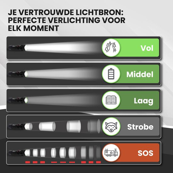 TTD® Military Flashlight LED Rechargeable - Technologie LEP - IP65 Waterproof - 1100 Lumens - 7 Hour Battery - Zoom Function - Powerbank Function - USB Rechargeable