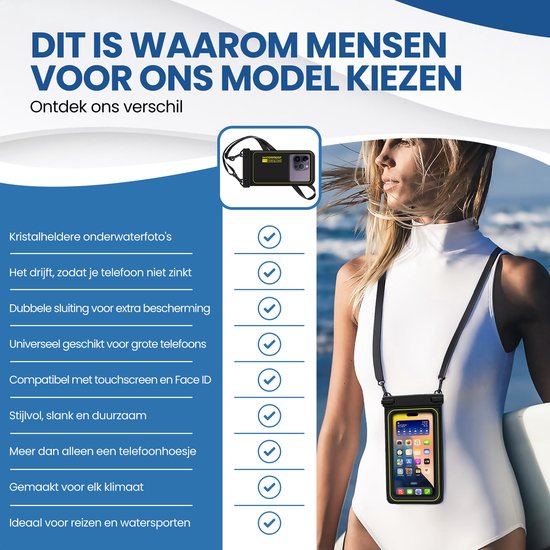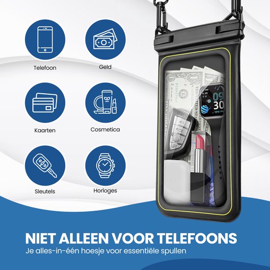 Que vous soyez en train de souper, de faire du bateau, de nager ou de vous détendre sur la plage : avec ces étuis, votre téléphone restera toujours à flot sur l'eau. Pas d'inquiétude si vous le faites tomber - vous pouvez facilement récupérer votre appareil ! Parfait pour la voile.