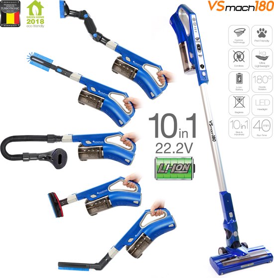 TurboTronic VS180 Aspirateur-balai sans fil avec dépoussiéreur - Bleu