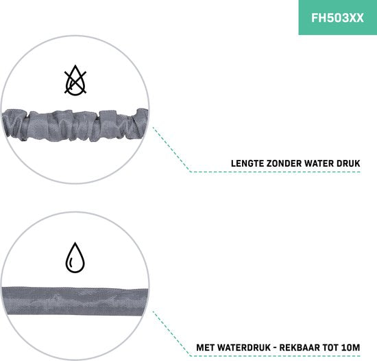 - 1x Tuyau d'arrosage de 3,7 à 10 mètres, fourni avec un raccord de tuyau avec et sans arrêt d'eau