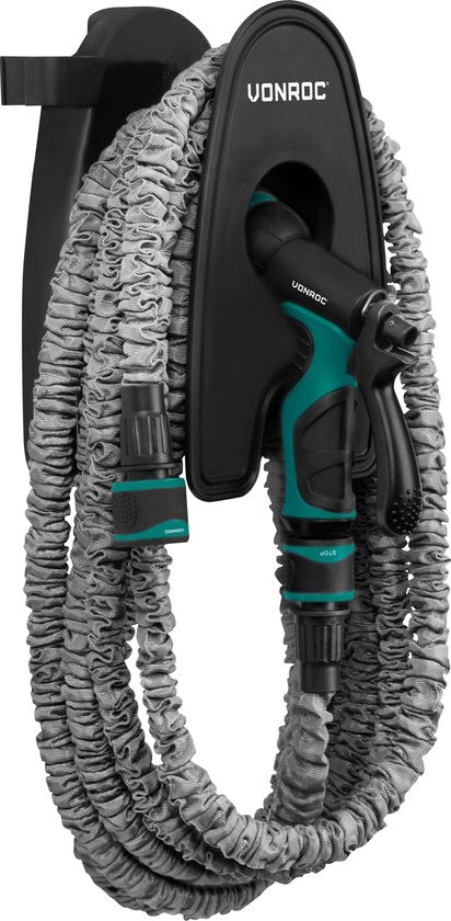 VONROC Tuyau d'arrosage - Tuyau d'arrosage extensible 10 mètres - Connecteurs, support mural et pistolet de pulvérisation inclus