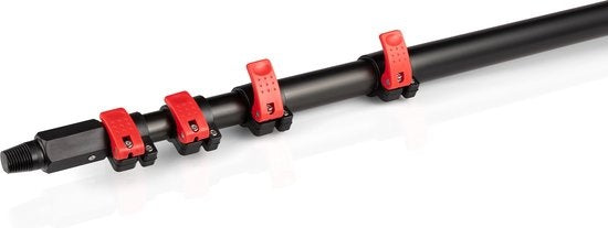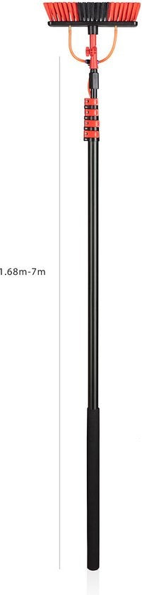 Le manche télescopique extensible est l'une des caractéristiques marquantes de cette brosse à eau. Avec une longueur maximale de 7 m, vous pouvez facilement nettoyer les gouttières, les toits et les hauts murs sans avoir besoin d'une échelle. Le manche télescopique peut être ajusté à n'importe quelle longueur entre le minimum et le maximum, ce qui le rend parfait pour toutes les tâches de nettoyage.