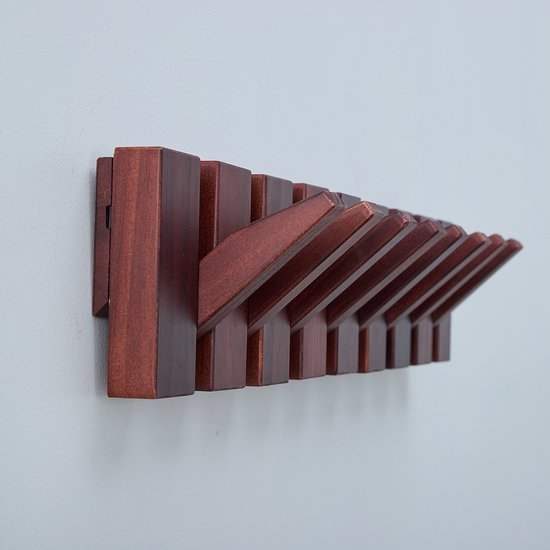 Expérimentez le mélange parfait de design et de fonctionnalité avec notre porte-manteau mural fait à la main, fabriqué en bois de haute qualité avec une élégante finition en noyer foncé. Ce magnifique meuble est plus qu'une solution de rangement pratique ; c'est un ajout visuellement attrayant à n'importe quelle pièce, soigneusement conçu et fabriqué avec talent.