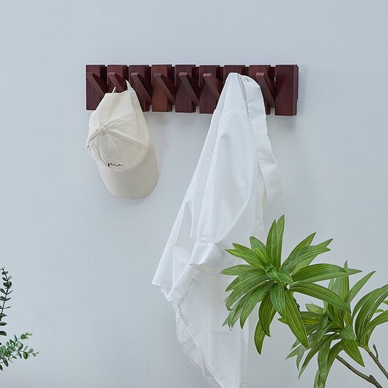 Ce portemanteau mural est équipé de 8 crochets pratiques qui se déplient facilement, ce qui vous donne beaucoup d'espace pour ranger soigneusement manteaux, sacs, écharpes et autres accessoires. Que vous le placiez dans le couloir, la chambre ou le bureau, ce portemanteau offre une solution intelligente et élégante pour organiser vos essentiels quotidiens.