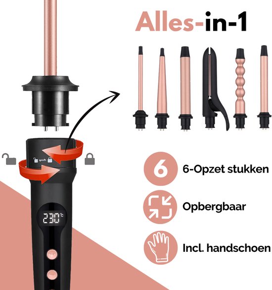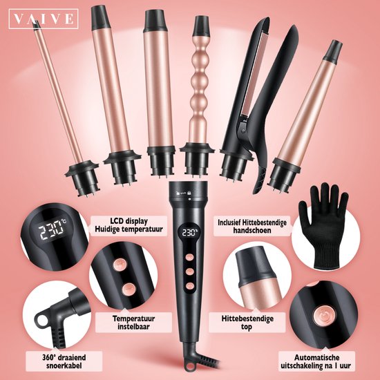 VAIVE Fer à boucler et à lisser 6-en-1 avec accessoires - Fer à boucler - Fer à boucler