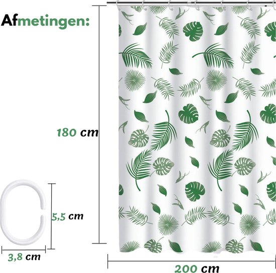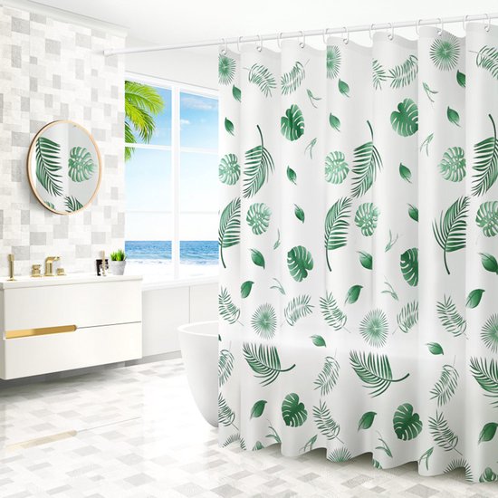 VAIVE Rideau de douche vert 180x200 - Anti-moisissure - Rideaux de douche - Anneaux