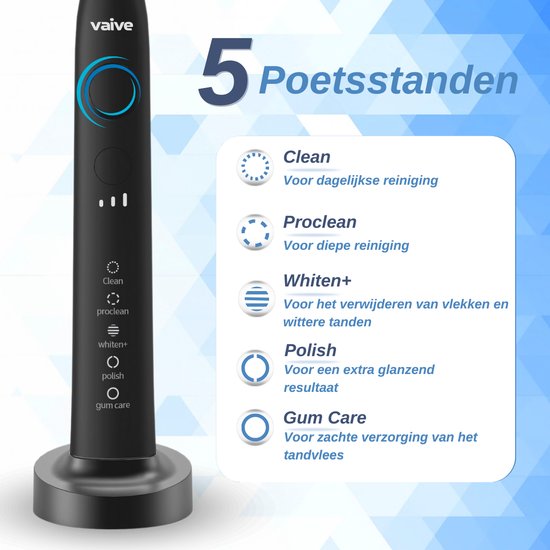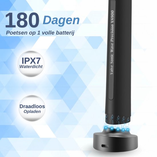 Brosse à dents électrique Vaive Sonic Wave Precision X8900 - 48000 VPM - 5 modes, 3 niveaux - 4 têtes de brossage et étui de voyage