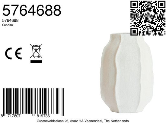 Apportez une touche de style et d'élégance à votre intérieur avec le vase SAPHIRA de Light & Living. Ce superbe vase, fabriqué en pierre, a un aspect blanc mat, contribuant à un look contemporain et sophistiqué. Avec un diamètre de 33 cm et une hauteur de 50 cm, il est le choix idéal pour présenter vos fleurs préférées ou comme objet décoratif sur une table ou une armoire. Ce vase fait partie de la collection vases, qui rassemble des designs élégants et uniques qui feront sensation dans votre espace de vie. Avec sa finition blanc mat, le vase se combine sans effort avec différents styles d'intérieur, du moderne au bohème. Light & Living est une marque réputée pour ses produits de haute qualité qui ont leur propre identité. Le vase SAPHIRA offre non seulement une fonction pratique, mais ajoute également un élément artistique à votre décoration intérieure. Avec son design épuré et sa finition luxueuse, ce vase est idéal pour le salon moderne et la salle à manger. Résumé : - Marque : Light & Living - Catégorie : Vases - Dimensions : Ø33 cm et hauteur 50 cm L'image principale montre le vase avec une élégante finition mate qui attire immédiatement l'attention. La simplicité du design en fait une option idéale pour tout type d'intérieur. Ce vase semble parfait aussi bien pour des fleurs simples que pour une simple branche et sera sans aucun doute un véritable accroche-regard dans votre intérieur.