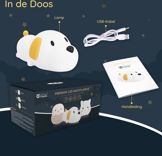 Votre enfant vit-il des moments d'agitation à l'heure du coucher ? Souvent, les enfants ont une imagination très riche qui leur permet de voir des choses comme des monstres sous leur lit, un fantôme dans le papier peint ou même un crocodile dans les rideaux de leur chambre. En tant que parent, vous souhaitez naturellement que votre enfant passe une bonne nuit de sommeil à ce stade crucial de son développement, et que vous puissiez vous-même dormir toute la nuit en toute sérénité. Avec notre adorable petit chien de Sleepy Friends comme veilleuse, votre bébé ou votre enfant pourra trouver le sommeil dont il a tant besoin !